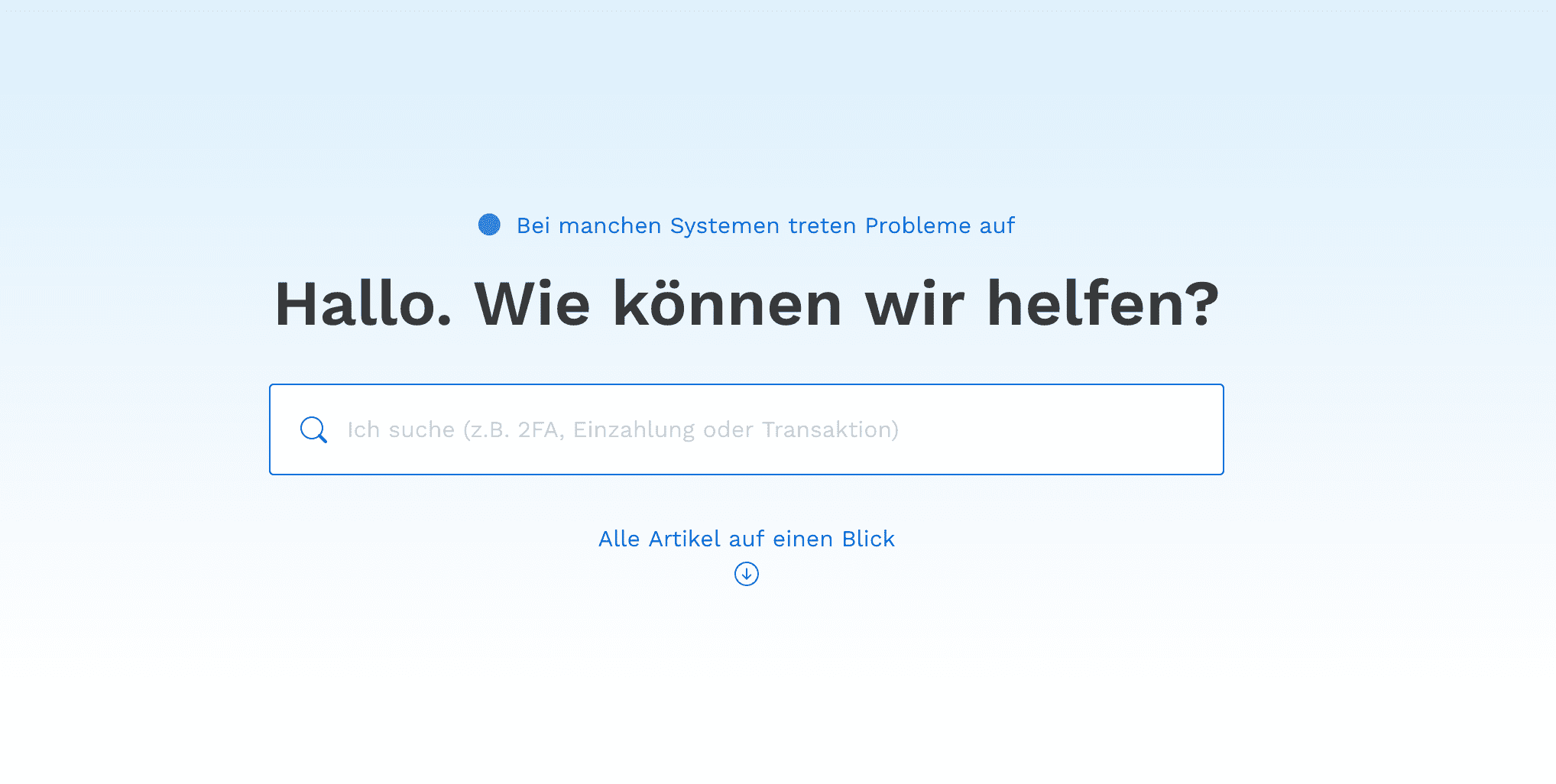 Bei Fragen oder Problemen kann zunächst der Bereich „Hilfe“ aufgerufen werden. Dort befindet sich ein FAQ-Bereich, in dem allgemeine und wichtige Fragen rund um die Plattform Bitpanda beantwortet werden.