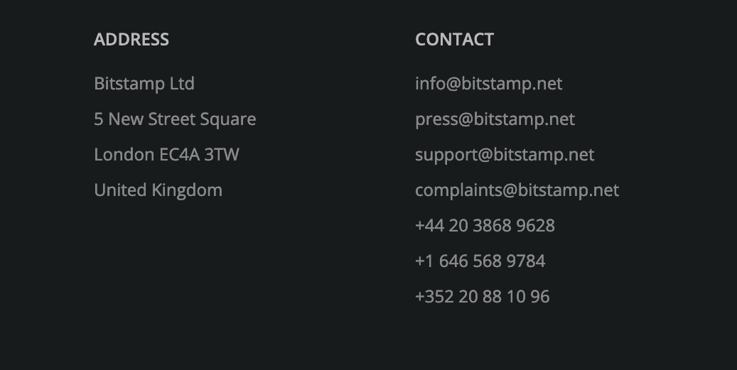 Ein wichtiges Kriterium im Bitstamp Test ist der Kundensupport. Egal ob Einsteiger oder fortgeschrittene Trader, Fragen können immer wieder einmal auftauchen. Dann ist es wichtig, auf welche Art und Weise der Support kontaktiert werden kann und auch, auf welche Wege der Kontakt angeboten wird. Wie die Webseite, ist auch der Support ausschließlich auf Englisch erreichbar. Auf der Webseite finden wir die folgenden Angaben: