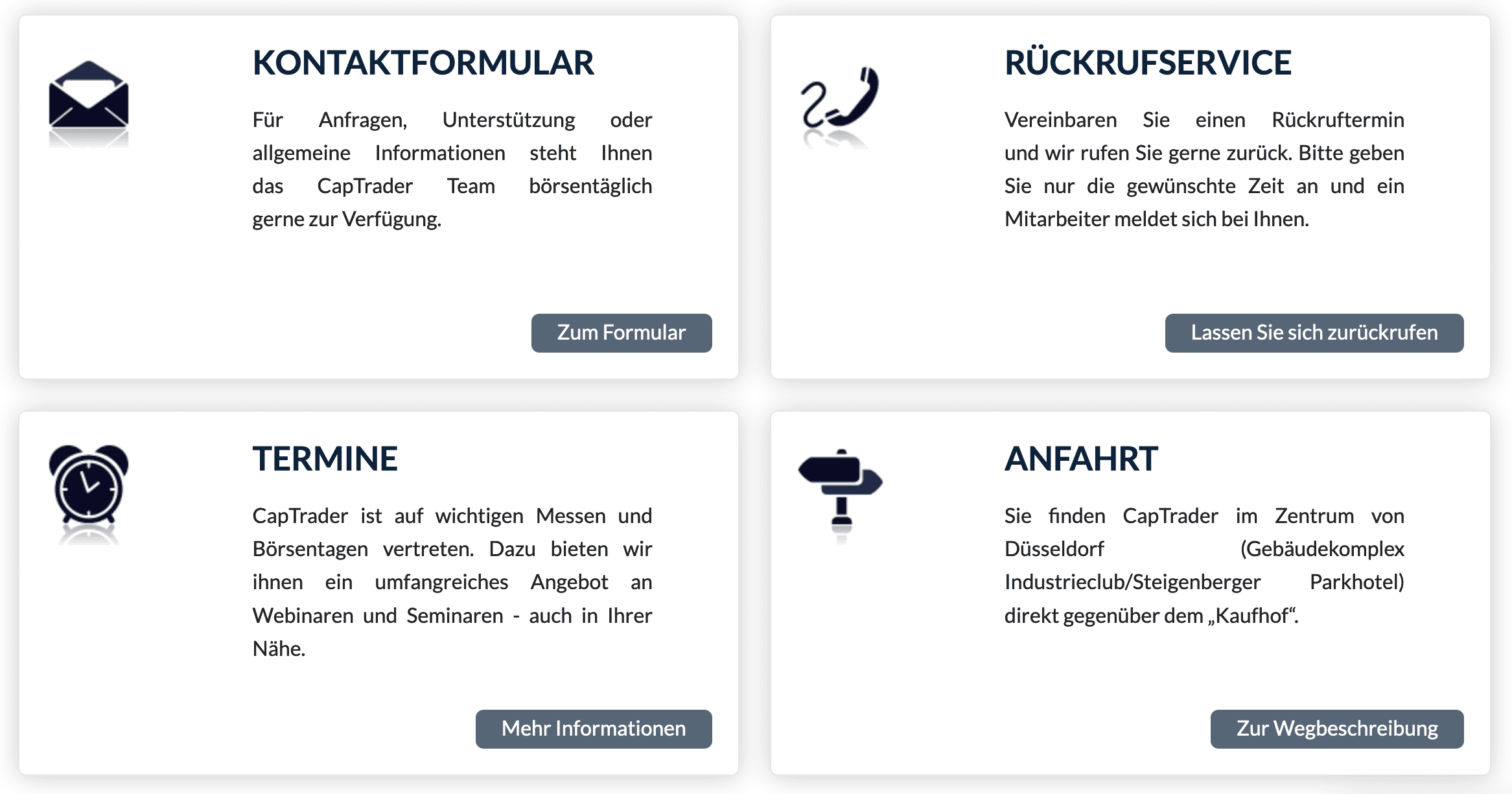 CapTrader bietet seinen Kunden die folgenden Kontaktmöglichkeiten: