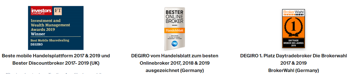 Die Aufzählung aller Awards würden den Rahmen dieses DEGIRO Testberichts sprengen, so dass wir hier lediglich zwei Beispiele genannt haben. Auf der Website können weitere Auszeichnungen eingesehen werden, welche der Broker in den vergangenen Jahren von Fachportalen und Presse erhalten hat. Da DEGIRO laufend an der Weiterentwicklung seines Handelsangebots arbeitet, ist damit zu rechnen, dass auch in Zukunft weitere Auszeichnungen folgen werden.
