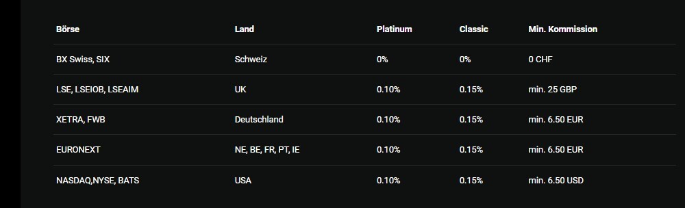 Die Ordergebühr ist dabei abhängig vom Transaktionsvolumen und beginnt ab 6,50 CHF.