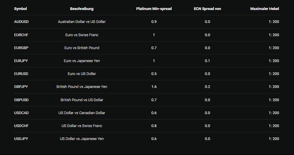 Die Spreads sind konkurrenzfähig. Kommissionen fallen dabei nicht an. Die Spreads variieren je nach Währungspaar und Marktliquidität, wobei Hauptwährungspaare in der Regel die engsten Spreads aufweisen.