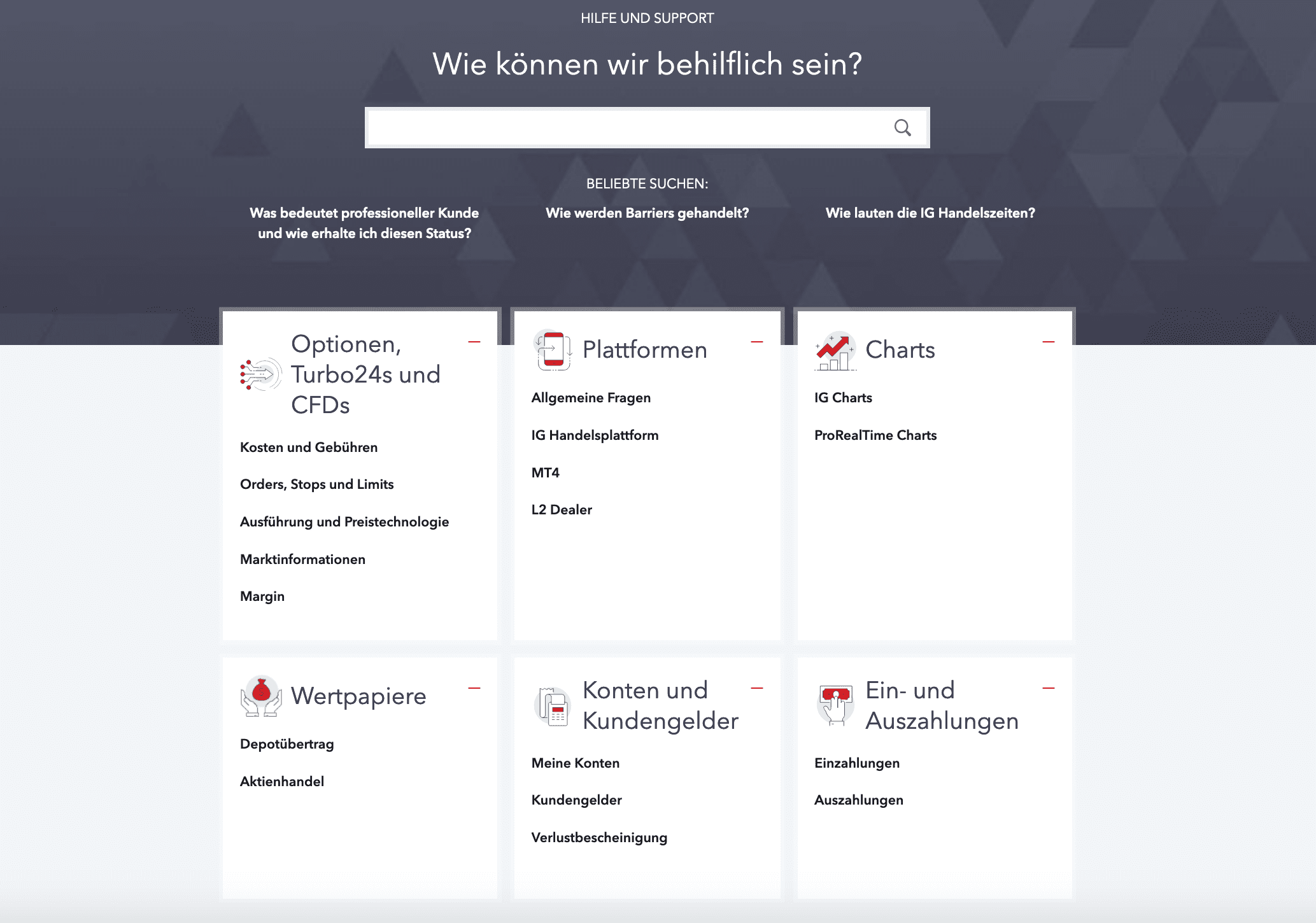 Für Trader, die IG Erfahrungen sammeln möchten, ist es wichtig zu wissen, dass die IG Group, zu der der Broker IG gehört, an der Londoner Börse gelistet ist. Ferner verfügt das Unternehmen über eine Niederlassung in Düsseldorf. Damit wird sichergestellt, dass sich Trader aus Deutschland bei dem Broker an einen deutschsprachigen Kundensupport wenden können. Dieser kann von Montag bis Freitag rund um die Uhr erreicht werden. Hierfür steht eine kostenlose Hotline zur Verfügung. Des Weiteren können Anfragen auch über den Live-Chat oder per E-Mail an die Mitarbeiter gestellt werden. Unsere Erfahrungen mit IG haben gezeigt, dass der Kundensupport stets gut erreichbar ist und auch auf Anfragen per E-Mail innerhalb kurzer Zeit antwortet.