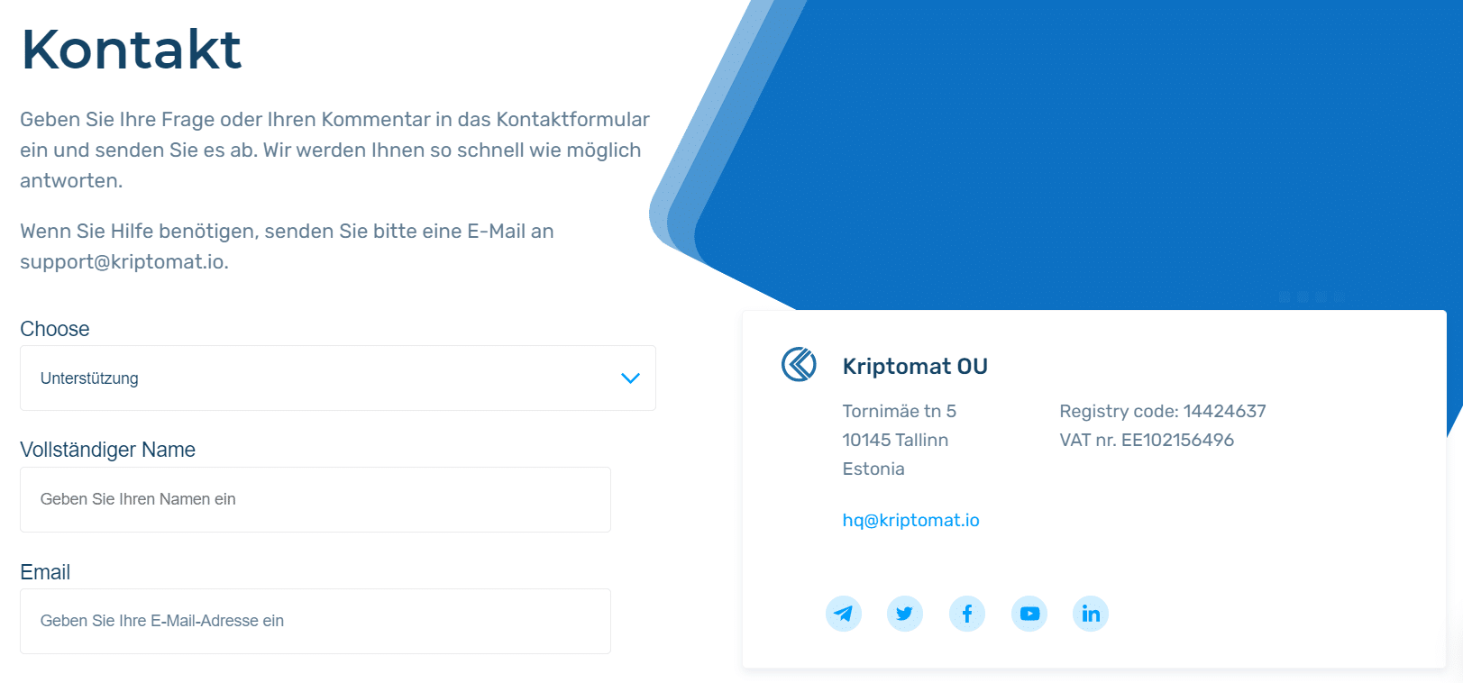 Nicht immer rechen die Informationen im FAQ-Bereich aus, um Nutzerfragen erschöpfend zu beantworten. In diesem Fall ist der Direktkontakt per E-Mail über [email protected] möglich, alternativ kann das Kontaktformular auf der Website genutzt werden. Daneben ist die Exchange in sozialen Netzwerken vertreten und bietet einen Telegram Chat an.