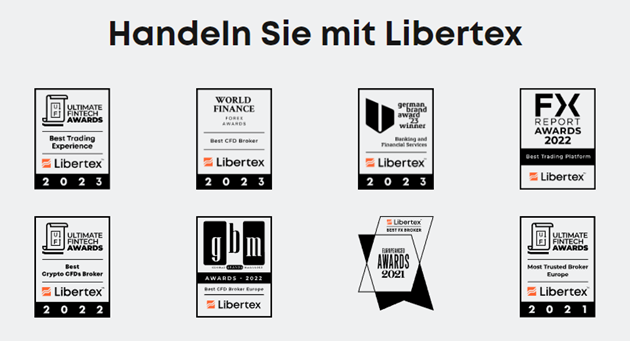 Im deutschsprachigen Web findet man nur wenige Berichte über Libertex Erfahrungen, und auch nichts Genaues über mögliche Auszeichnungen des Brokers. Nach eigenen Angaben handelt es sich um einen internationalen Anbieter mit Millionen von Nutzern, der 30 namhafte Auszeichnungen erhalten hat – welche das sind, erfährt man jedoch nicht. Details oder Verlinkungen fehlen.