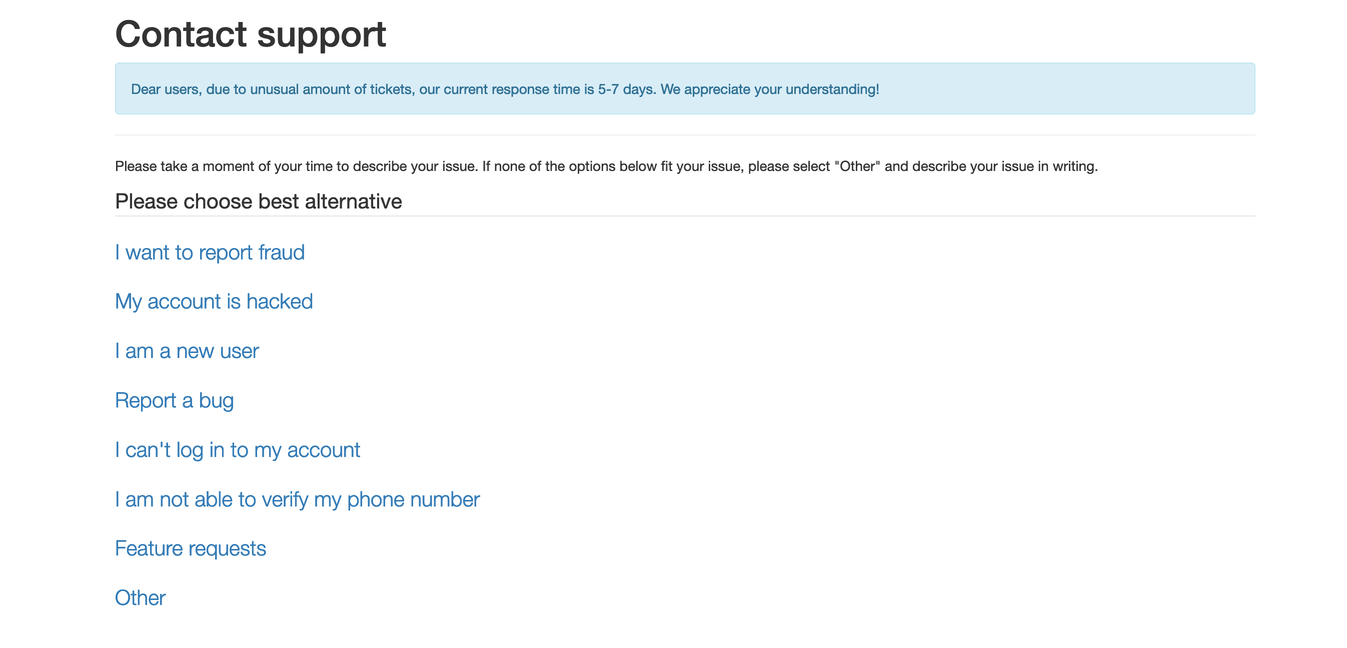 Es gibt die Möglichkeit anzugeben, warum der Support kontaktiert werden soll. Zu den Auswahlmöglichkeiten gehören unter anderem die Optionen, einen Betrug zu melden oder einen technischen Fehler anzugeben. Es öffnet sich dann ein Feld für eine schriftliche Anfrage beim Support. Anzugeben sind die eigene Mail-Adresse sowie die Nachricht. Auch der Anhang von Dateien ist möglich. Wichtig: Der Support antwortet nicht auf Deutsch. Die Sprache für die Kommunikation bei LocalBitocoins ist Englisch. Ein telefonischer Support wird nicht angeboten.