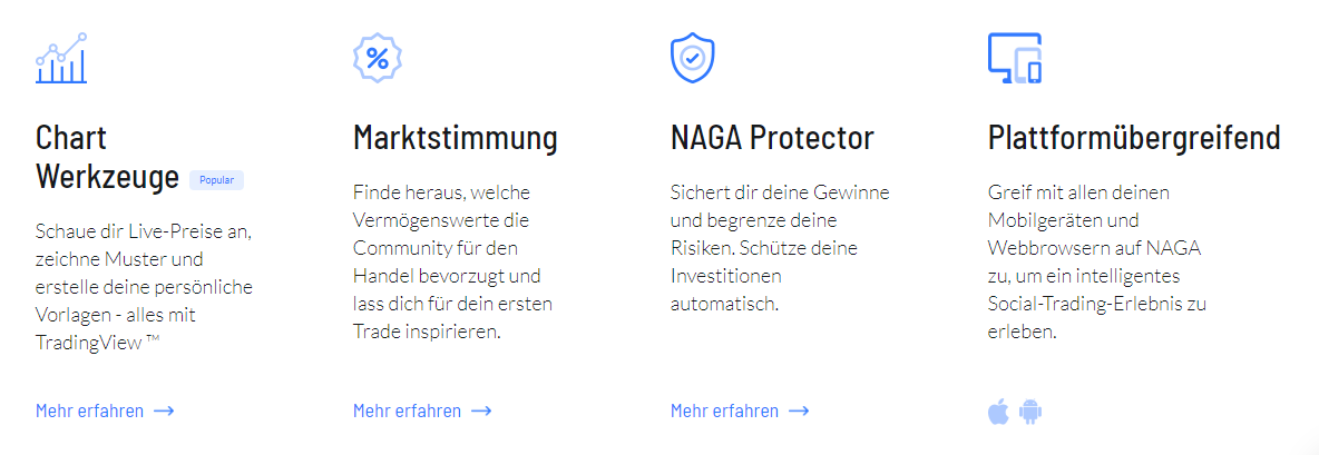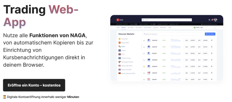 Doch wenn Sie eine moderne, flexible Handelsplattform mit Social-Trading-Elementen suchen, haben Sie mit NAGA eine leistungsstarke Lösung.