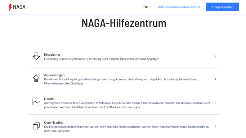 Wie im Abschnitt „Usability“ bereits erwähnt, stellt NAGA eine ganze Reihe an Ressourcen zur Weiterbildung seiner Nutzer bereit. Dazu gehören Webinare, Trading-Rechner, Wirtschaftskalender, E-Books und ein umfangreiches Hilfe-Center.