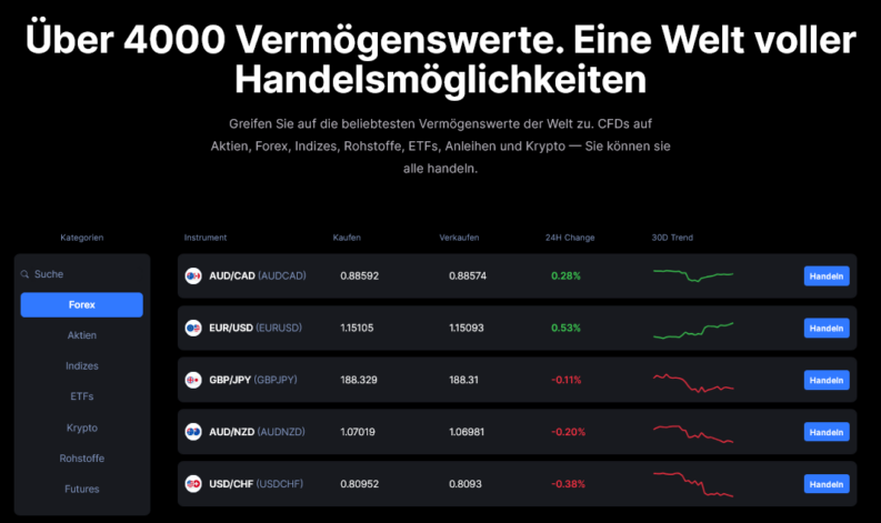 Das breite Handelsangebot an CFDs, Forex und Kryptowährungen sowie die Integration von MetaTrader 4 & 5 bieten Anlegern eine solide Basis für den aktiven Handel.