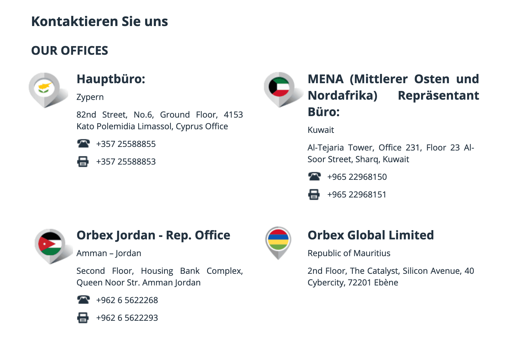erreicht werden. Darüber hinaus ist es möglich, einen kostenlosen Rückruf anzufordern. Die Mitarbeiter des Unternehmens setzen sich sodann zur gewünschten Zeit mit dem Kunden in Verbindung. Besonders hervorzuheben ist: Obwohl es sich um einen zypriotischen Broker handelt, der in Deutschland keine Niederlassung unterhält, steht Kunden aus Deutschland ein deutschsprachiger Kundenservice zur Verfügung. Unsere Orbex Erfahrungen haben ergeben, dass die freundlichen Mitarbeiter alle Anfragen zügig und kompetent beantworten und dass ihnen die Zufriedenheit der Kunden am Herzen liegt.