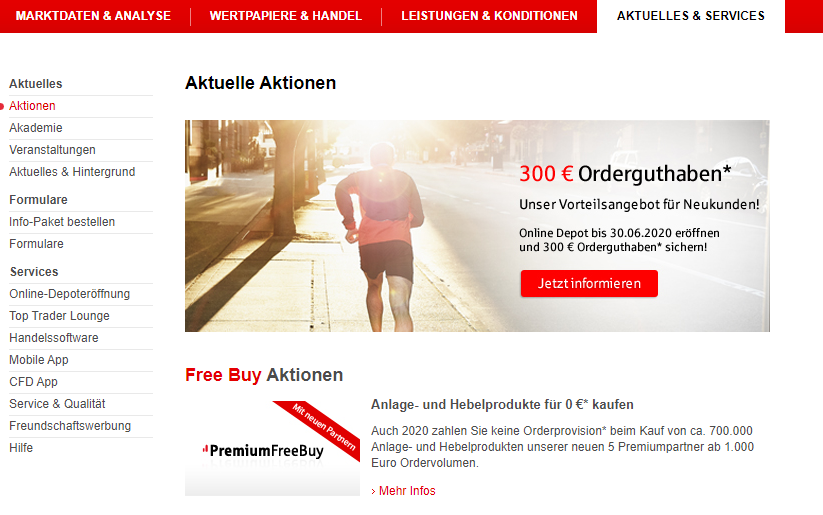 Regelmäßig werden zusätzliche Aktionen angeboten, bei welchen die Trader beispielsweise ausgewählte Finanzprodukte zum Nulltarif erwerben oder ermäßigt handeln können.