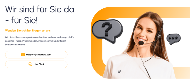 SmartSTP bietet einen umfassenden Kundensupport, um Kunden bei Fragen oder Problemen effizient zu unterstützen. Die verfügbaren Möglichkeiten zur Kontaktaufnahme umfassen: