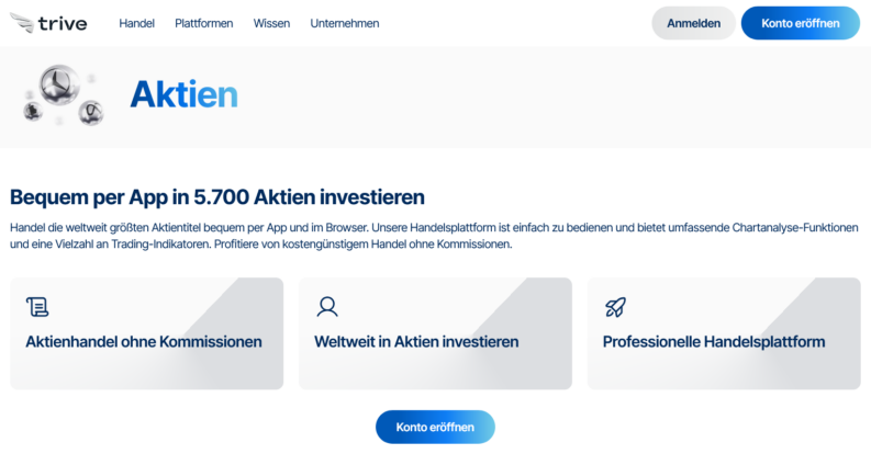 Sehr positiv: Für den Handel mit echten Aktien erhebt Trive keine Kommissionen.