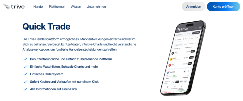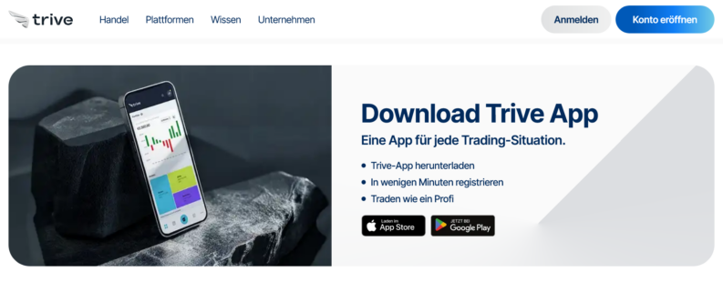 Die Website von Trive zeichnet sich durch eine klare und übersichtliche Navigation aus. Nutzer können schnell die gewünschten Informationen oder Handelswerkzeuge finden. Die Hauptmenüs sind logisch organisiert, was die Orientierung erleichtert.