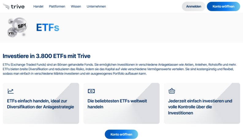 In unserem Trive Test konnten wir feststellen, dass der Broker Zugang zu über 1.500 ETFs ermöglicht, was eine sehr breite Abdeckung ermöglicht.