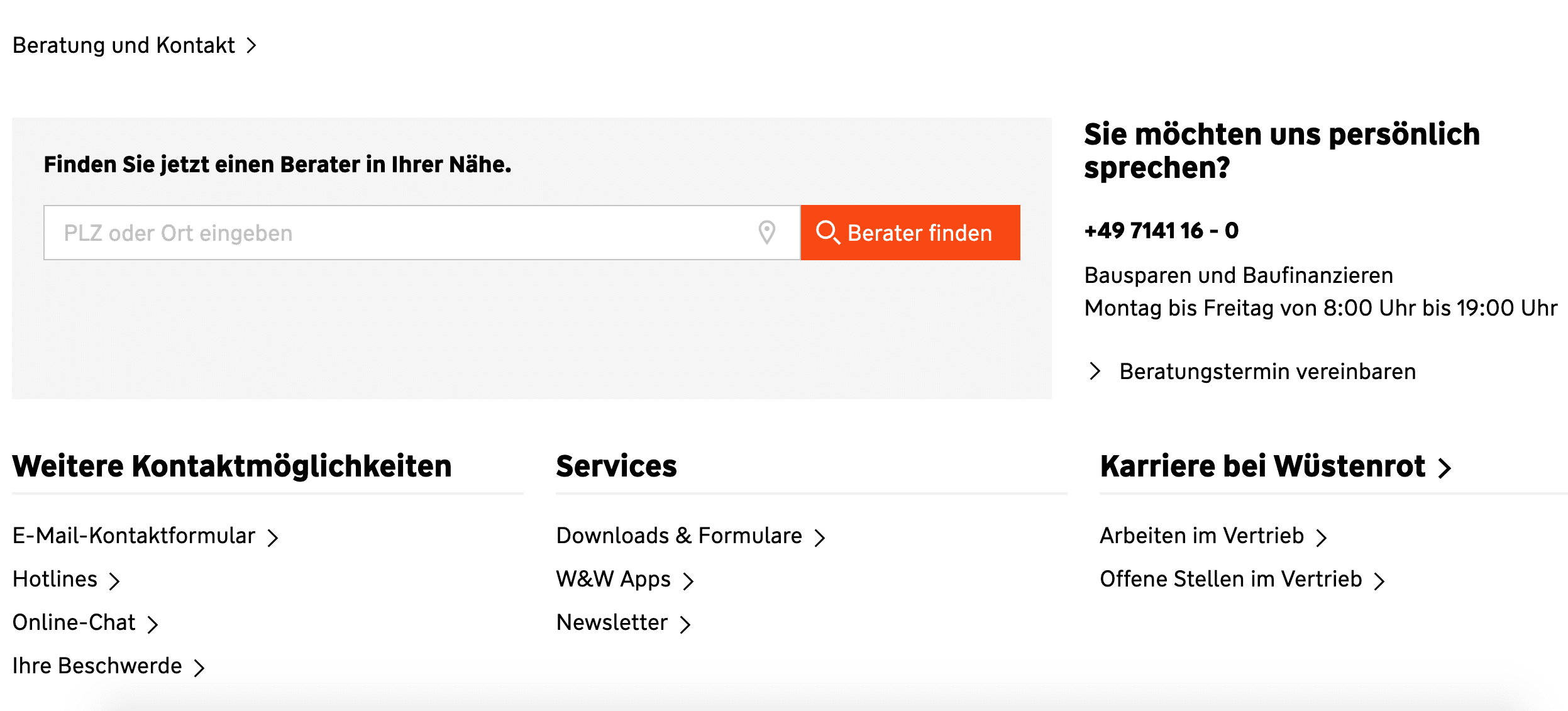 Die allgemeinen Geschäftsbedingungen sind einfach zu finden und auch der Kundenservice kann über die Website sofort kontaktiert werden, falls interessierte Besucher der Seite vor einer möglichen Kontoeröffnung noch Fragen an Wüstenrot haben.