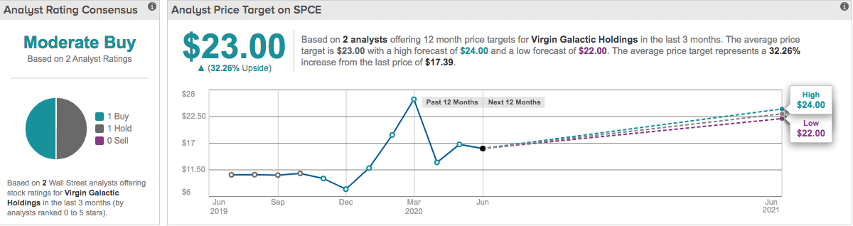 Von TipRank befragte Analysten haben den Median des Richtpreises von Virgin Galactic auf 23 Dollar festgelegt, der niedrigste Richtwert liegt bei 22 Dollar.