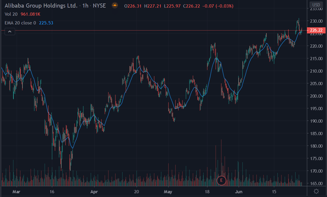 Alibaba Aktie im 1h-Chart