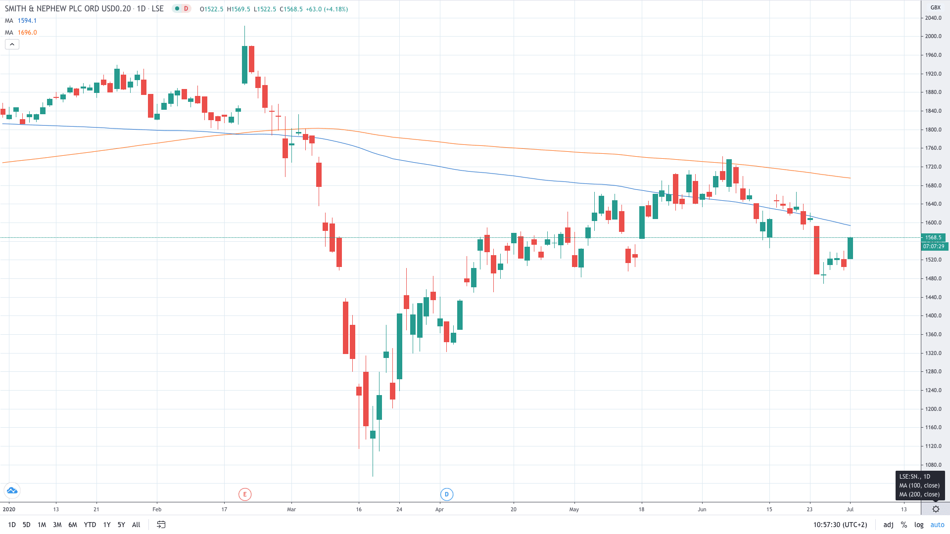 Smith & Nephew, ein Hersteller von Medizintechnik, gab an, die Verkaufszahlen hätten sich im Mai und Juni nach dem massiven Rückgang im April wieder erholt. Das Unternehmen berichtete, dass die Einnahmen vom April im Vergleich zum Vorjahr 47% niedriger ausgefallen sind. Darüber hinaus wurden im Mai und Juni 27% bzw. 12% weniger eingenommen.