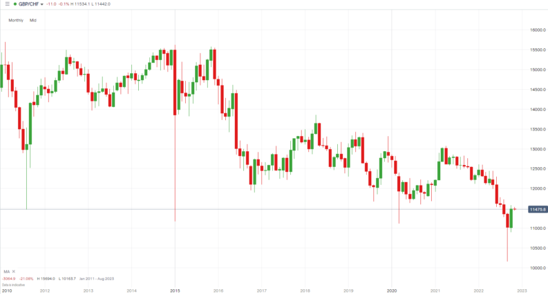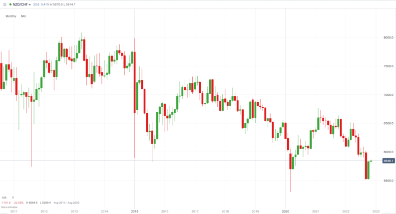 - Der Neuseeländische Dollar schafft es erneut auf die Liste, dieses Mal gegenüber dem Schweizer Franken, der wie der Yen im Laufe des Monats schwächer war.