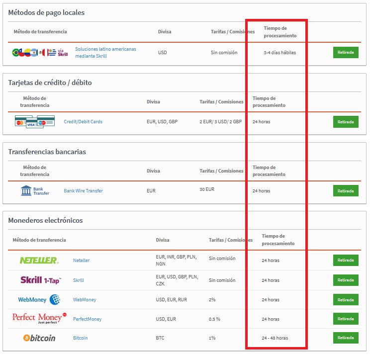 Una vez que ha solicitado su retiro, el tiempo retiro Alpari puede tomar hasta 3 ó 4 días hábiles para procesar dependiendo de la cuenta en que recibirá los fondos.