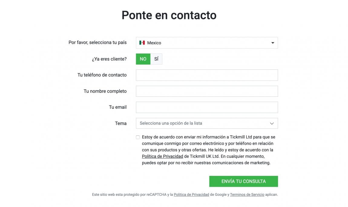 Contactar las oficinas de Tickmill, ¿Bueno?