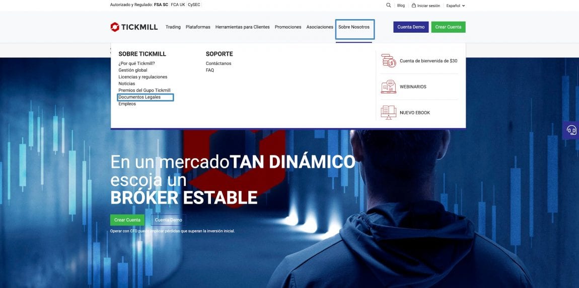 ¡Todo está en la letra pequeña! Pero, ¿pos dónde puedes encontrarla? Fácil, Tickmill ofrece varias vías para acceder a sus términos y condiciones, y de hecho tiene una página dedicada a alojar todos los documentos pertinentes.