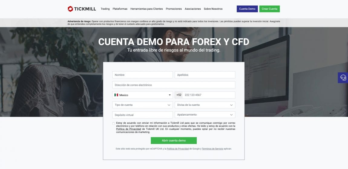 Abrir una cuenta demo en Tickmill es muy sencillo y aquí lo explicaremos paso a paso. Desde el momento en el que como mexicano te registrar con este broker hasta cuando ya eres un experto en la plataforma y debes decidir si es momento de pasar a operar con la cuenta real Tickmill live.