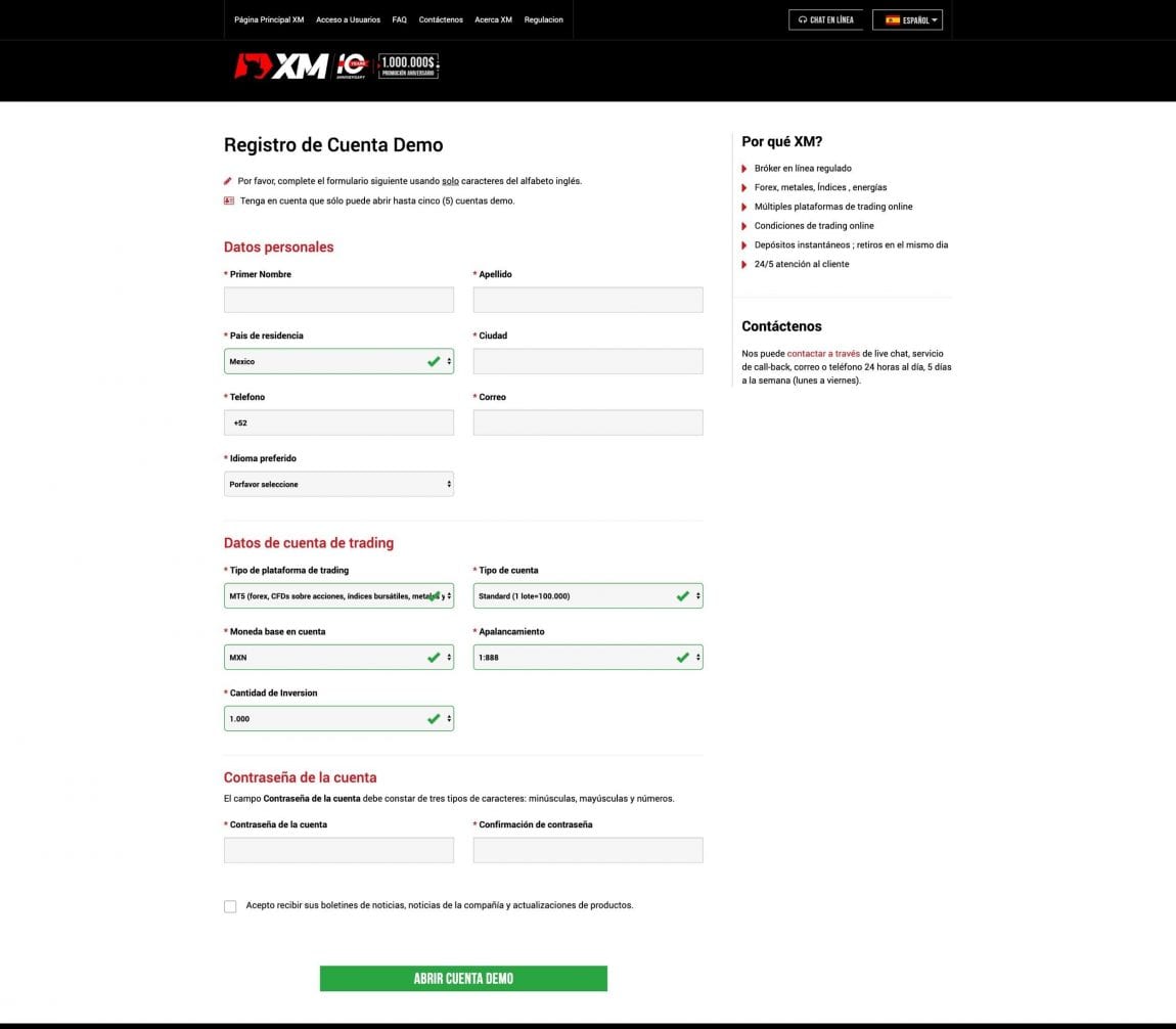 Cómo abrir una cuenta demo de XM México