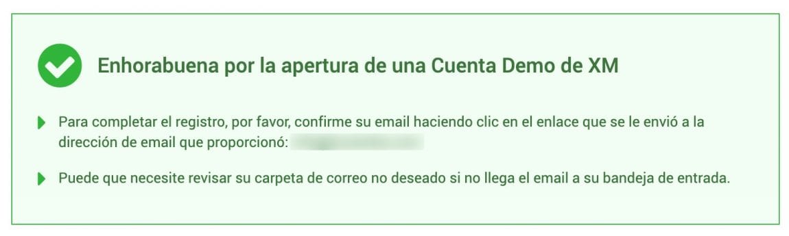 Primero, XM mandará un email para que confirmes la creación de la cuenta demo. En ese correo debes clicar el enlace dentro del email para confirmar todo.