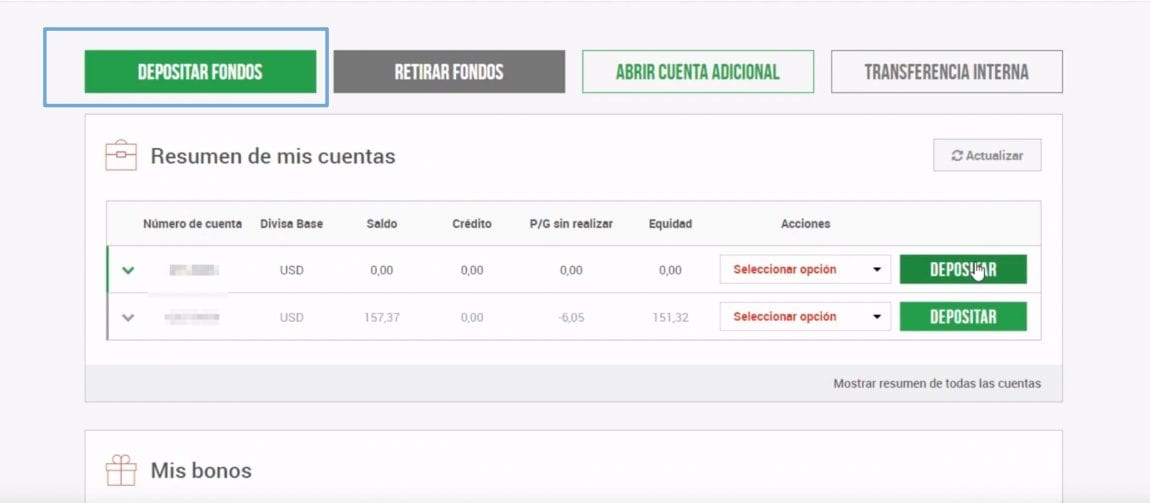 A continuación veremos los pasos para depositar fondos.