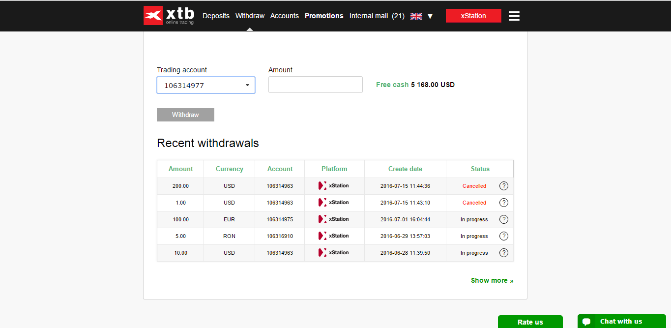 En el bróker XTB todos los procedimientos bancarios, tanto depósitos como retiros, son de cómoda ejecución, sin presentar requisitos que imposibiliten la realización del mismo, ya que su objetivo principal es satisfacer las expectativas del inversor.