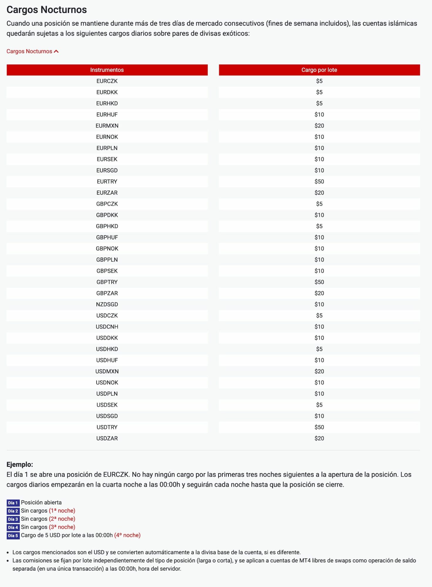 Según la página oficial, «las cuentas islámicas gozan exactamente de las mismas condiciones de trading que las normales. La única diferencia es que no cargaremos swaps sobre instrumentos negociables, aunque sí aplicaremos un cargo por mantener los pares exóticos que se mantengan durante más de tres noches consecutivas.»