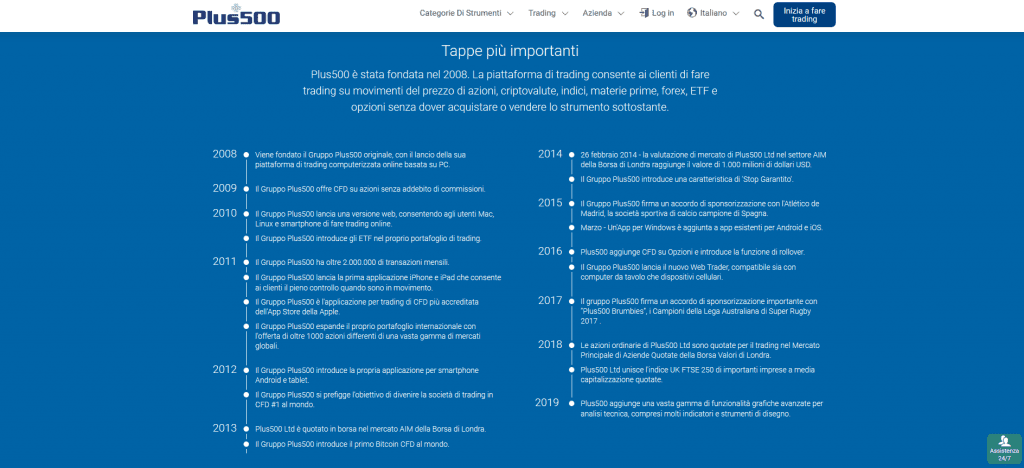 Plus500 ha un ottimo pedigree ed è in circolazione da più di dieci anni; inoltre ha più sedi sparse nel mondo: Cipro, Australia, Regno Unito e Singapore. Se vuoi conoscere come funziona Plus500, dai un’occhiata alla nostra recensione Plus500 completa e suddivisa in comodi paragrafi.