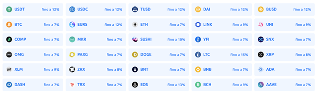 Di seguito, troverai una panoramica dettagliata di tutte le commissioni relative al deposito, al prelievo e ai prestiti in criptovalute.