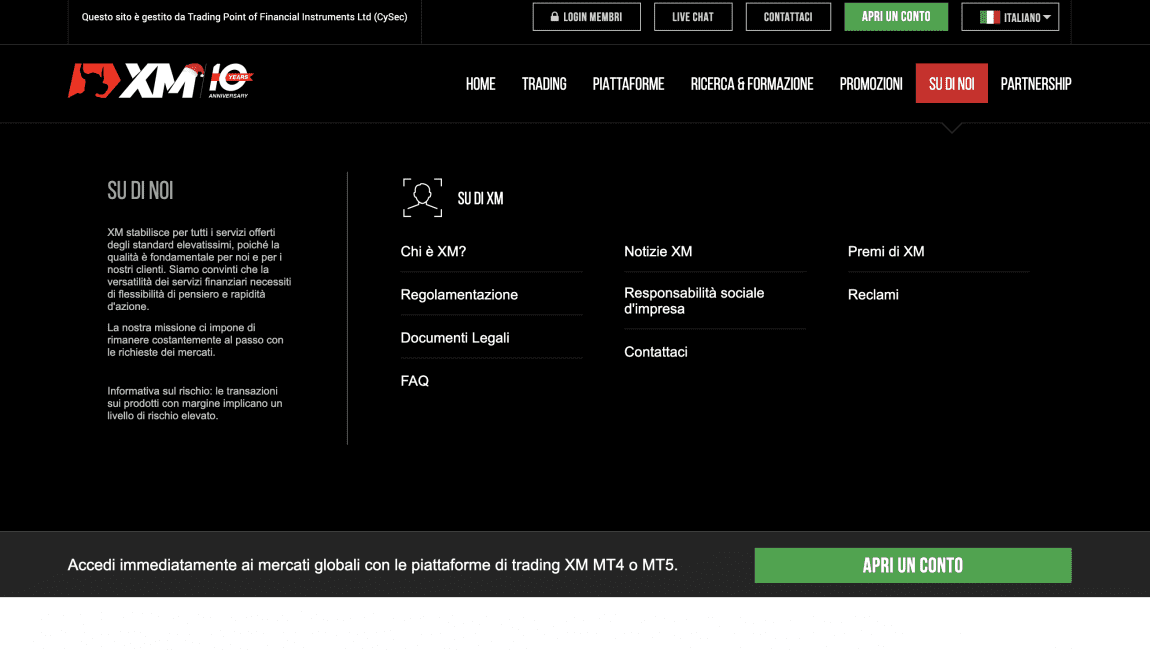 - Collegati al sito del broker XM (non è necessario fare il Log-in all’Area Membri, né collegarti alla tua piattaforma di trading)