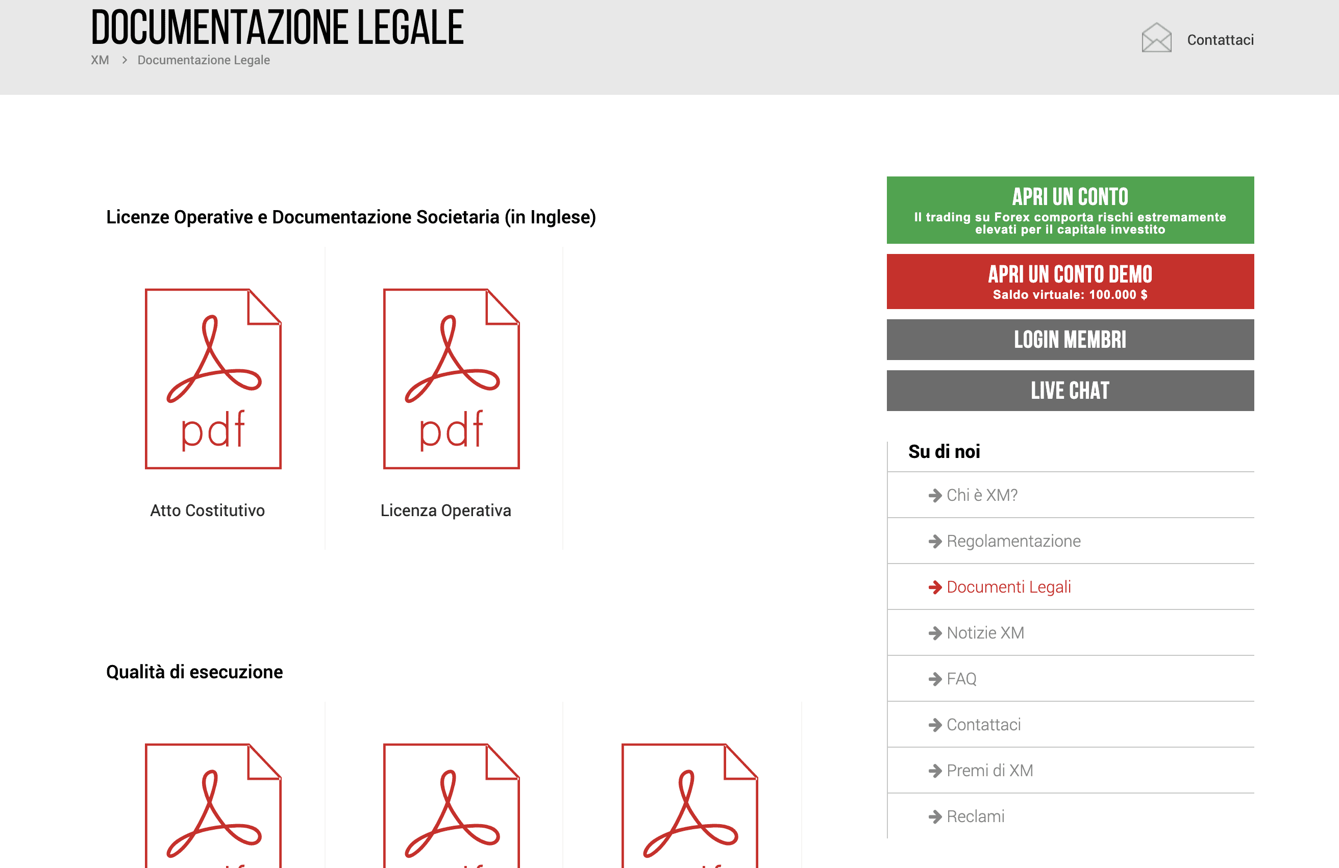 - Qui potrai vedere in un comodo elenco tutti i documenti, in formato PDF, relativi ai termini e condizioni del broker XM: sentiti libero di scaricare o leggere quello che desideri