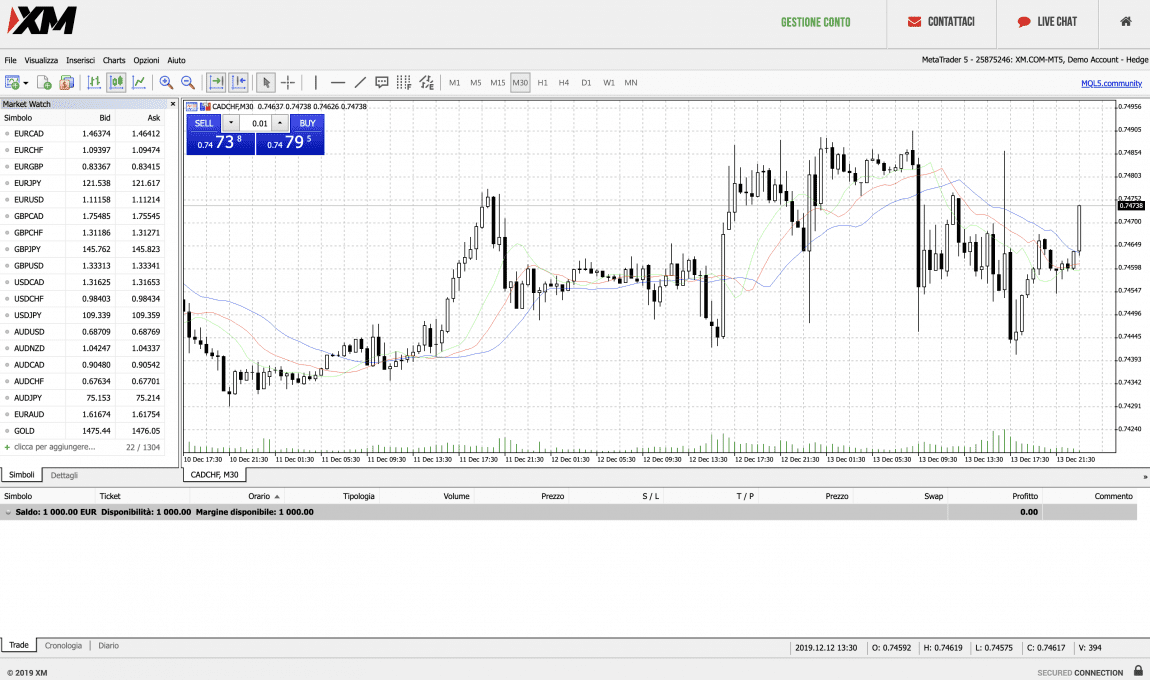 Ti ricordiamo che le piattaforme usate tramite il conto demo sono identiche alle piattaforme reali: potrai cosi cominciare a fare pratica con la MetaTrader usando soldi virtuali. Inoltre, il conto demo XM non ha una scadenza: potrai usarlo quanto vuoi e per qualsiasi scopo, anche testare strategia di trading prima di usarle con un conto reale.