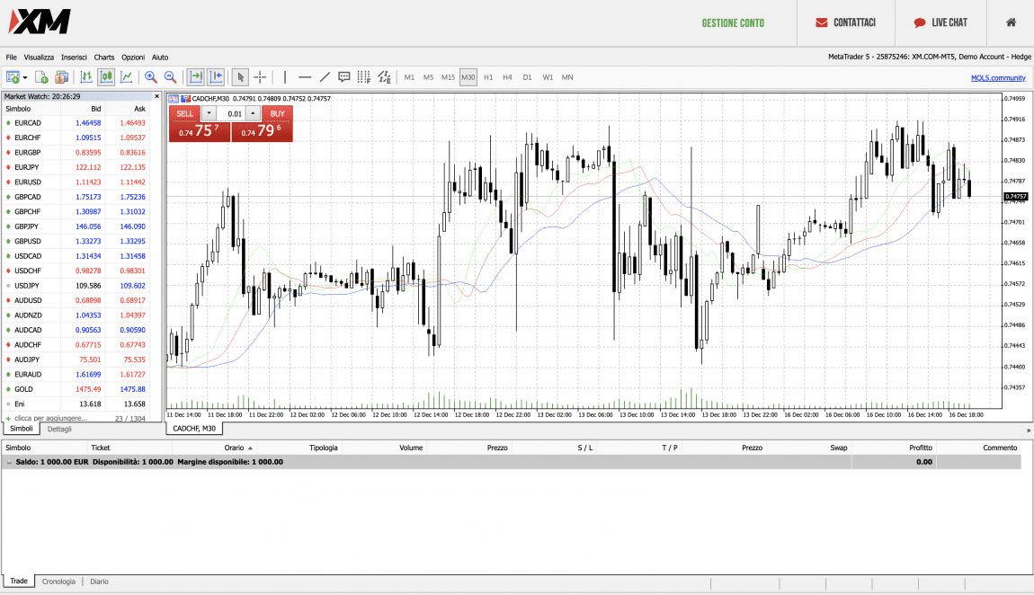 E per quanto riguarda i prelievi su XM, l’offerta è imbattibile: prelievi minimi a partire da €5 e nessuna commissione da pagare. Se sei curioso di conoscere da vicino il broker XM, puoi sempre aprire un conto demo gratuito e testare così per quanto vuoi le piattaforme di trading di XM.