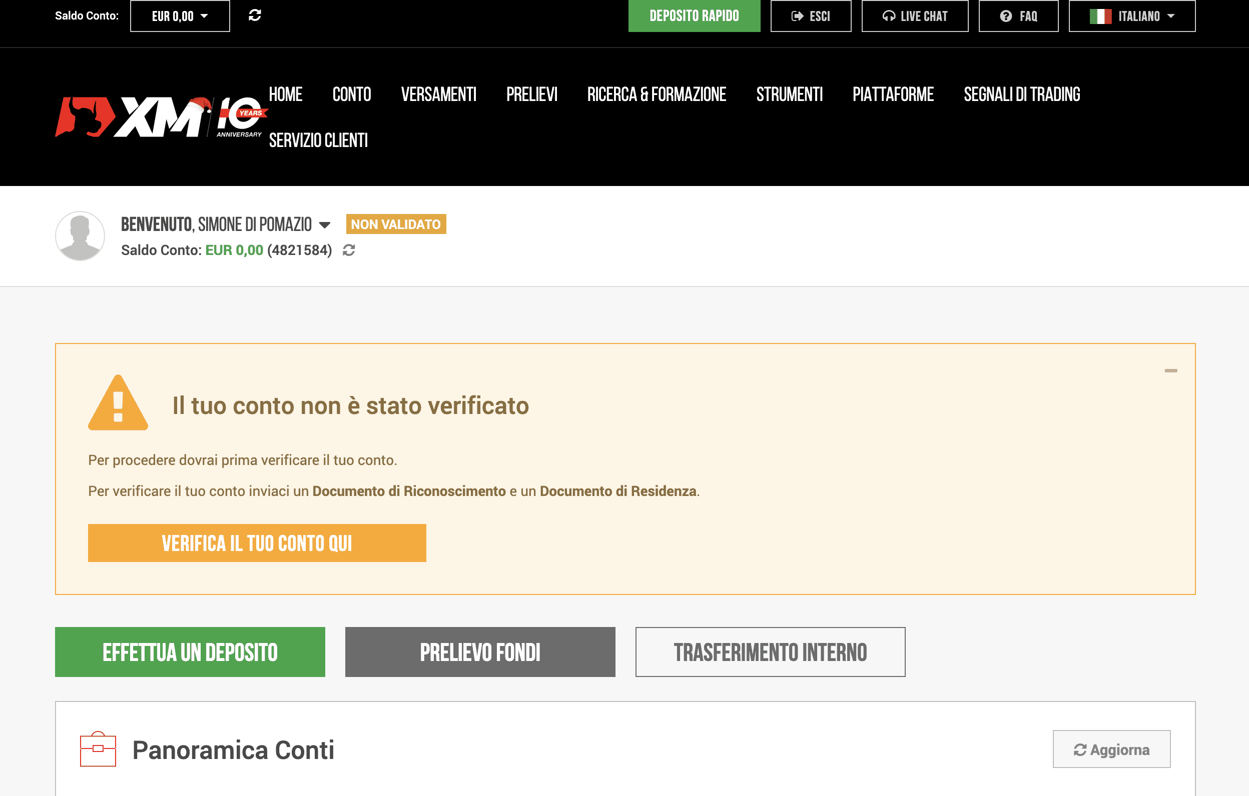 - Devi avere verificato il tuo conto reale XM (procedimento che vedremo nei paragrafi successivi)