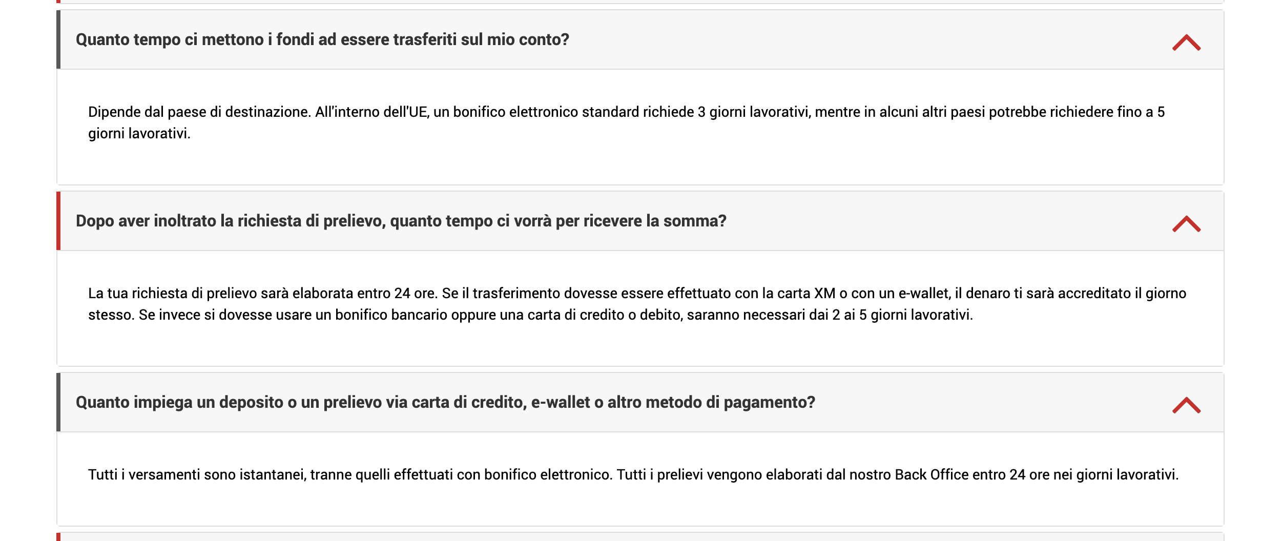 - Considerare che i tempi di attesa per i prelievi su XM potrebbero essere più lunghi del solito durante i periodi di festività (come Natale o Pasqua)