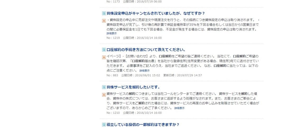 - ホームページから、下にスクロールしていき、画面右の「口座開設」の下にある「よくあるご質問」をクリックします。すると次の画面に変わります。