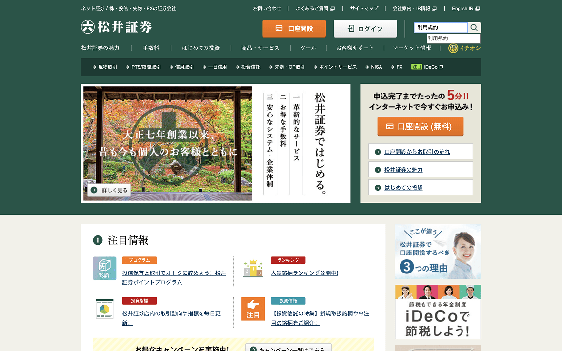 松井証券の利用規約を見つける方法