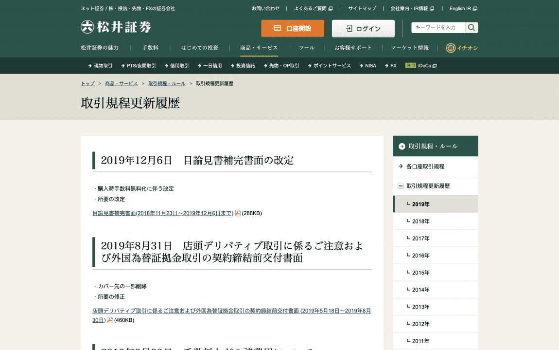 • 上のスクリーンショットの一番上に表示されている、「取引規程更新履歴」をクリックします。