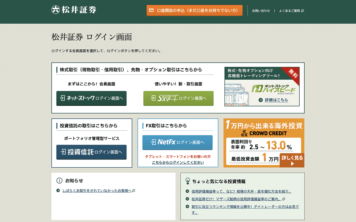 松井証券のネットストック口座から出金するには、まずトップページから会員画面へログインが必要です。