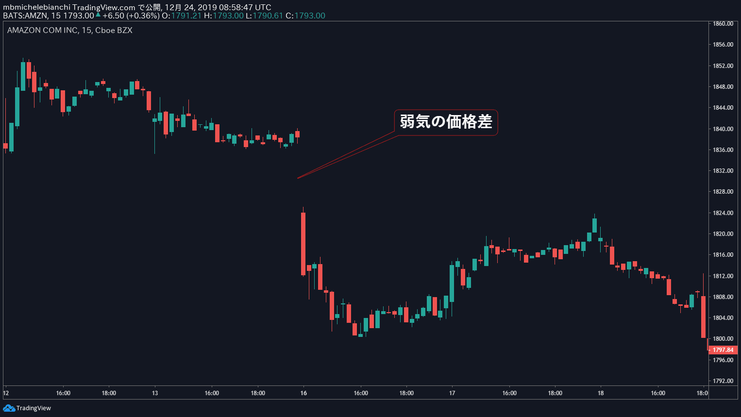 - 価格差とは、売買活動の急増で市場の大幅な短期的変動につながる時に発生する、資産のチャート履歴にある空白のことです。