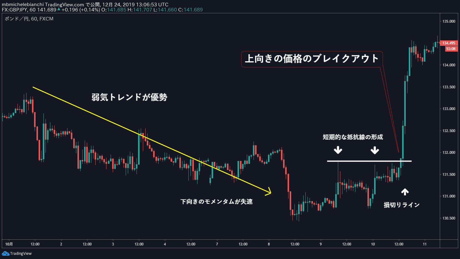この例では、評価額は重要な経済報告の影響を受けました。価格は最初のブレイクと同じ方向に動き続けることが予想されるので、スキャルパーはこの情報を使用して潜在的な動向の方向性を決定します。言い換えれば、価格が抵抗線を上に抜ける場合には、強気の傾向が続くことが予想されます。逆に、支持線を下に抜けた場合には、弱気の傾向が続くと予想されます。