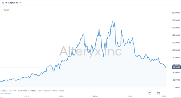 Global work and leisure patterns are always changing, but the Covid pandemic accelerated the process considerably. The rapid increase in value of some data stocks gave a hint of what might be possible. In the two years between July 2018 and July 2020 Alteryx stock shot up in price by 367%